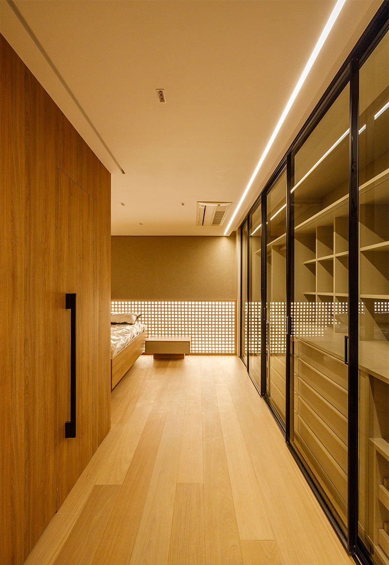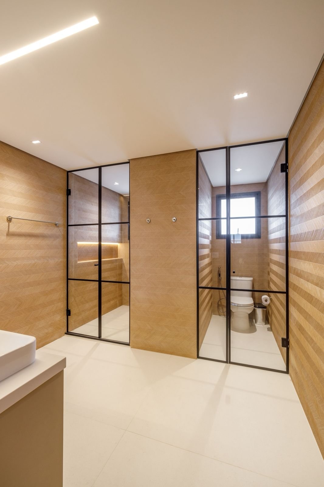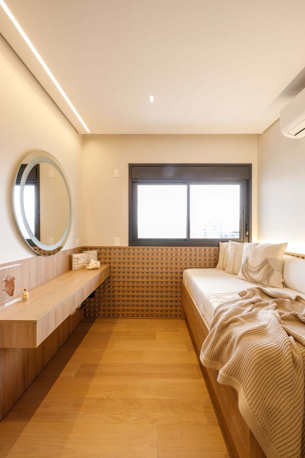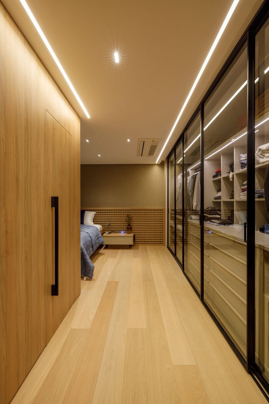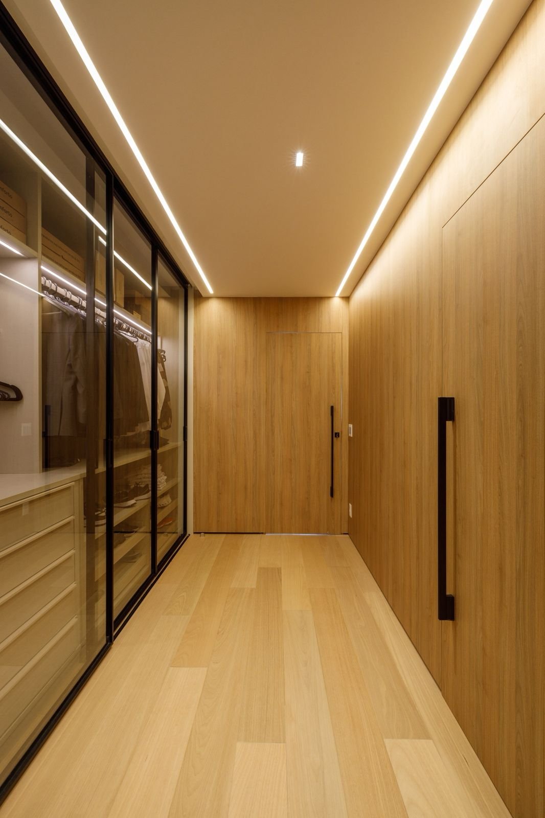 Projetado do zero, este apartamento traz uma linguagem sofisticada e marcante, com presença de curvas, cores elegantes e muita madeira. O forro amadeirado percorre os ambientes, reforçando a sensação de aconchego e continuidade visual. O grande destaque é a adega walk-in, que compõe o cenário da sala de estar e se integra de forma fluida aos espaços gourmet e à cozinha. Um projeto que une funcionalidade e imponência, com detalhes que impressionam em cada ângulo.